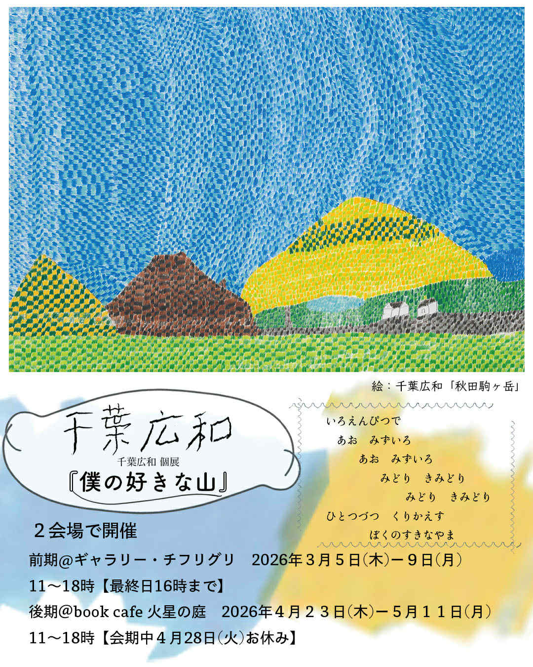 チフリグリ会場では作品とワークショップを、火星の庭ではお茶会も予定しております。