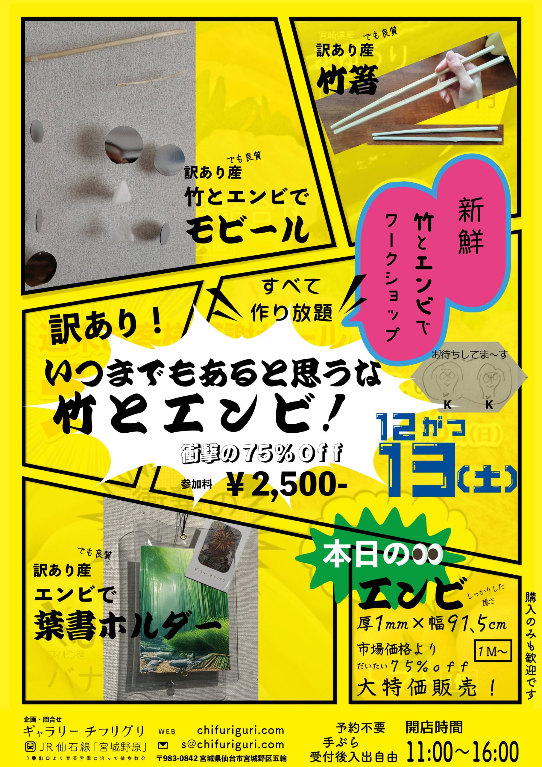 突如として現れた竹とエンビ!お役目に必要分は納められ、のこった素材で新鮮 竹とエンビで ワークショップ!訳ありワークショップ!いつまでも有ると思うな竹とエンビ!!!!!!・モビール・葉書ホルダー・竹箸 などなど◎すべて作...