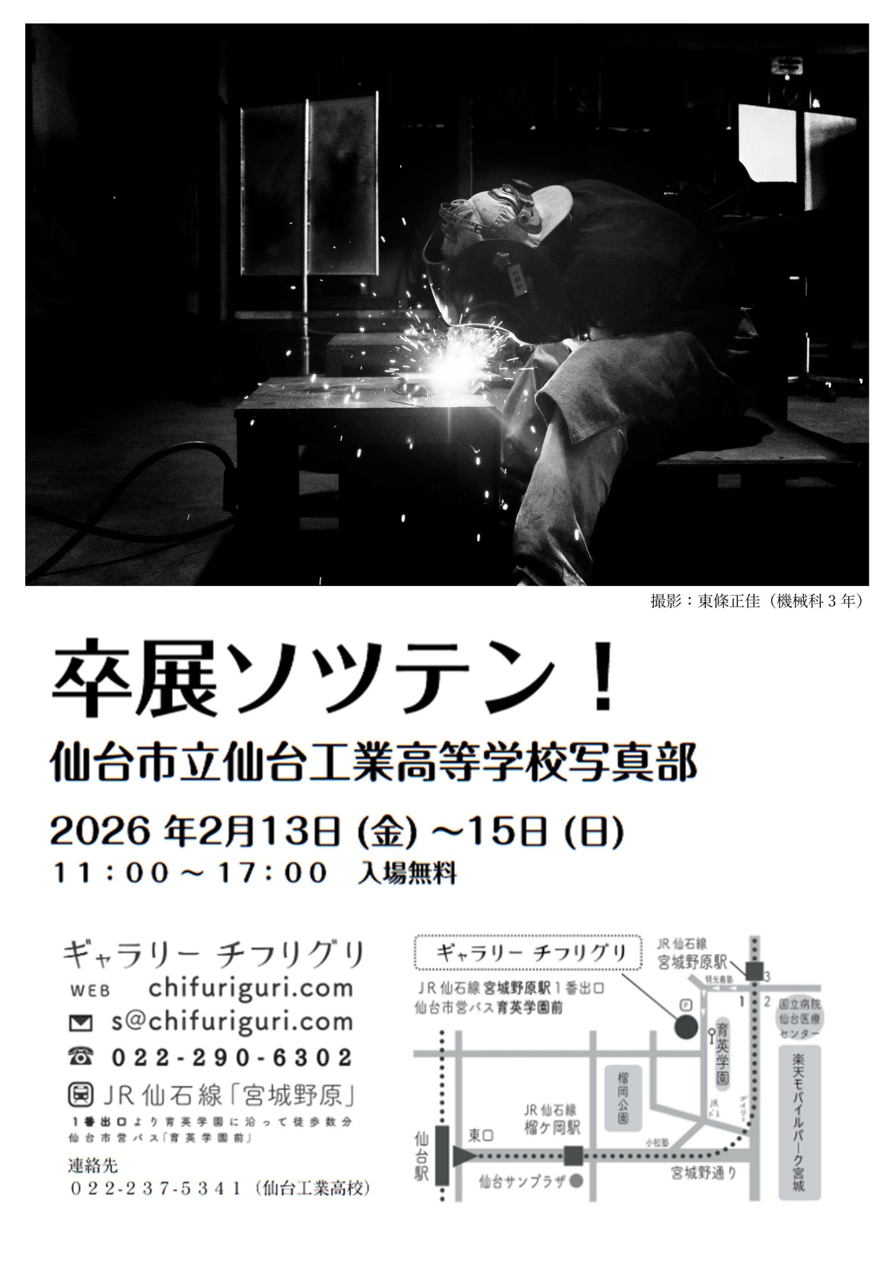 仙台市立仙台工業高等学校写真部 写真部3年生◎人の卒業制作展です。 2月 13.金 〜 15.日11:00〜17:00Instagram https://www.instagram.com/shikou_photoclu...