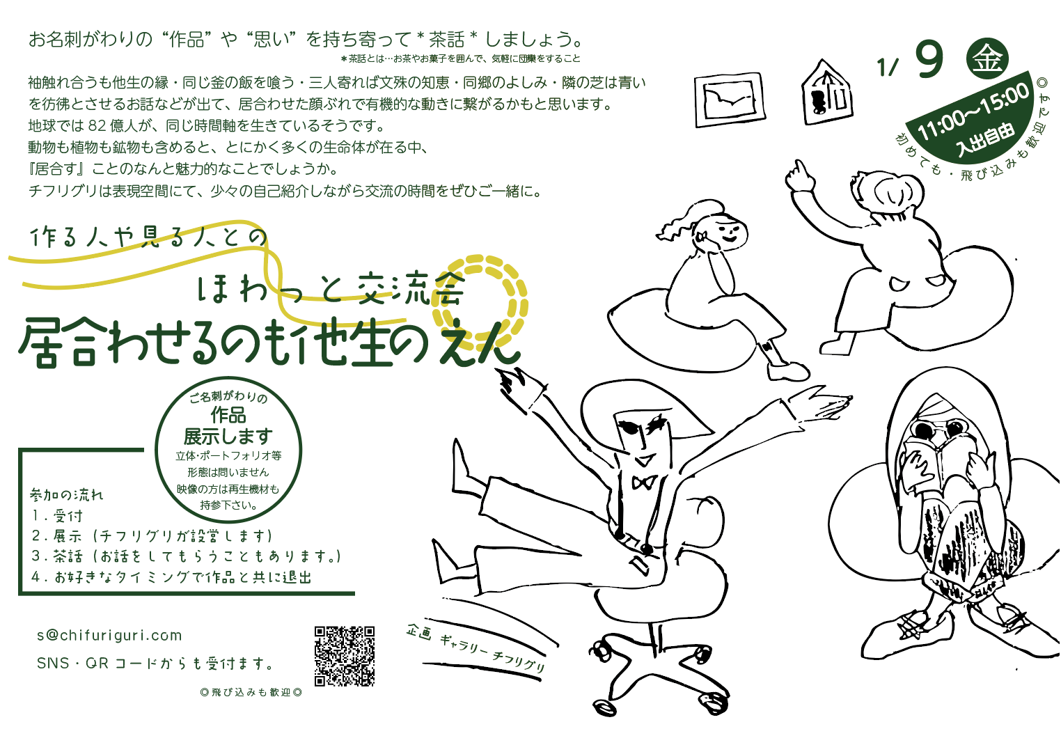 お名刺がわりの“作品”や“思い”を持ち寄って茶話 しましょう。袖触れ合うも他生の縁・同じ釜の飯を喰う・三人寄れば文殊の知恵・同郷のよしみ・隣の芝は青いを、彷彿とさせるお話などが出て、居合わせた顔ぶれで有機的な動きに繋がる...